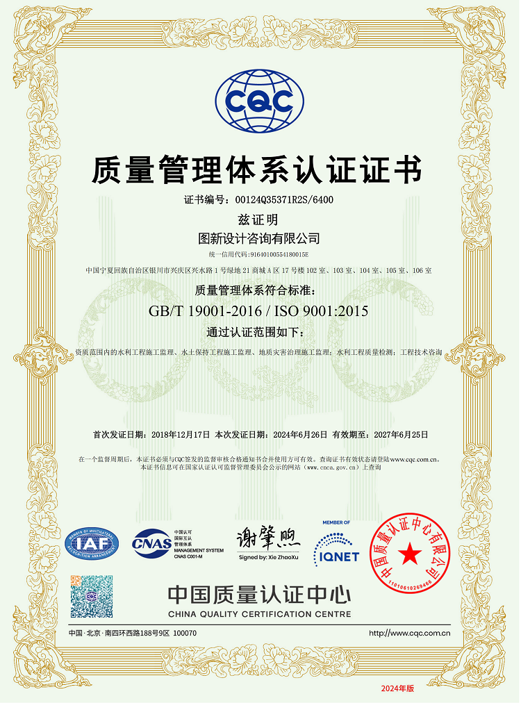 质量管理体系认证证书