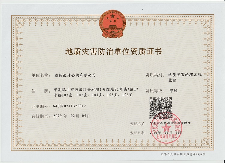 地质灾害防治单位资质证书-地质灾害治理工程监理甲级